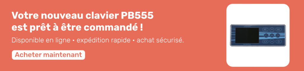 La configuration du clavier PB555 se fait en lien direct avec le boîtier de contrôle. Cette étape permet d’indiquer au système quels équipements sont installés sur votre spa.